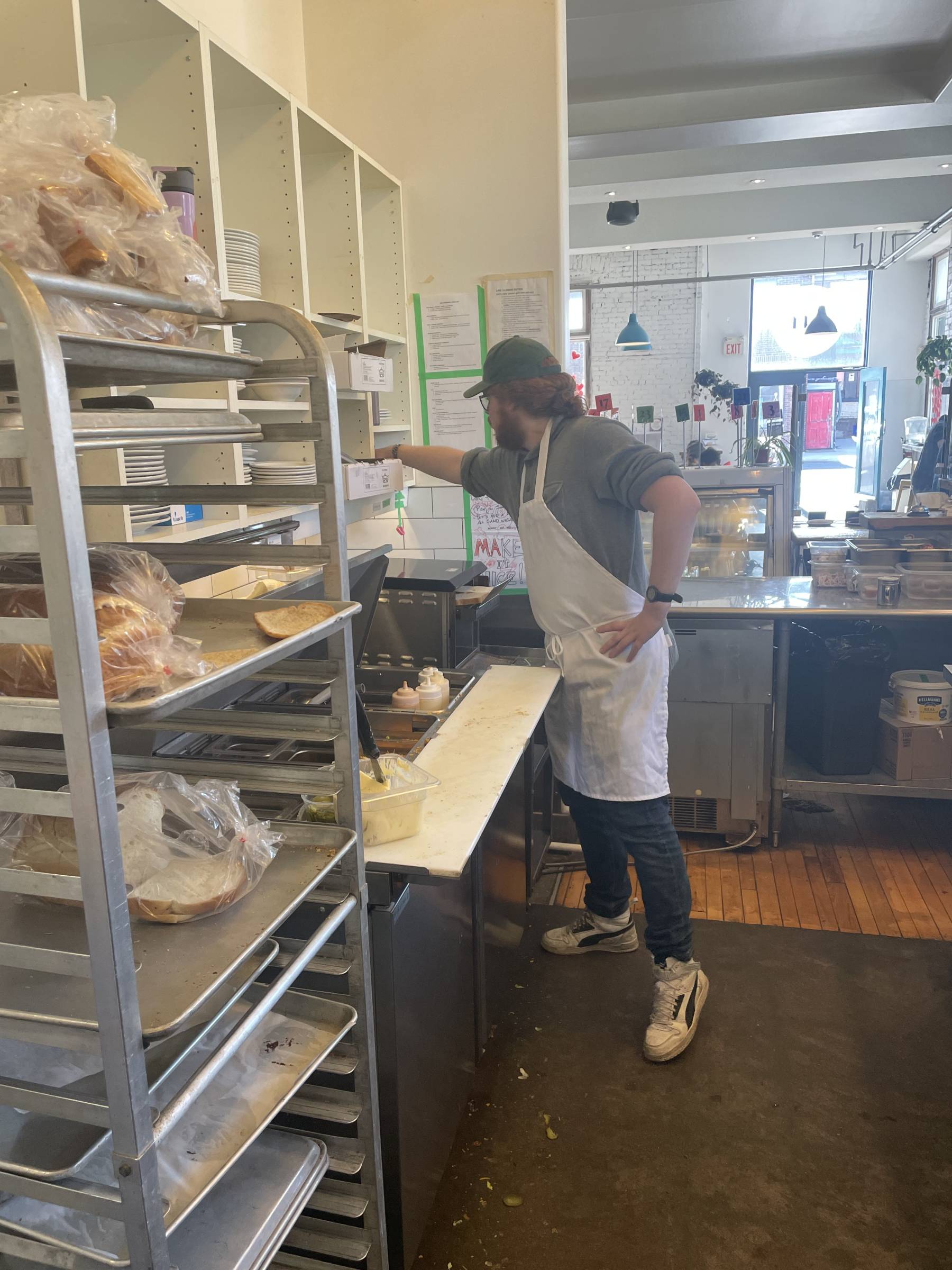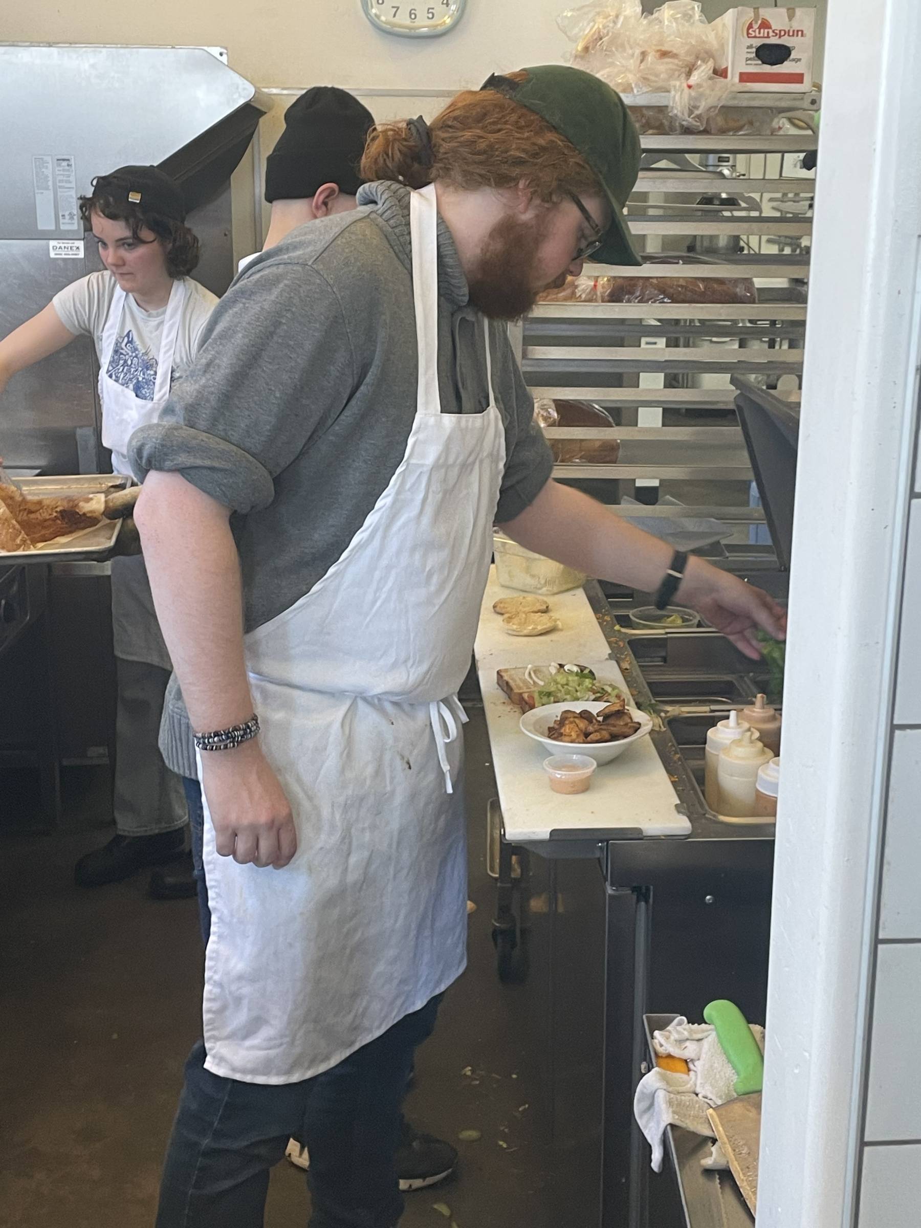 “541 has been an interesting experience for me. It is nothing like I expected. I work mostly in the dish pit, so I don’t have a lot of interaction with the customers – mainly with other staff. I appreciate how calm the kitchen seems to be compared to the rest of the store. There is a lot of beauty in the back as people are forced to work together and communicate, especially when it’s busy. I have learned to appreciate the dish pit. Though I would rather be working on the line; it’s still an important job to help things flow better. The staff are kind and I enjoy working here!”