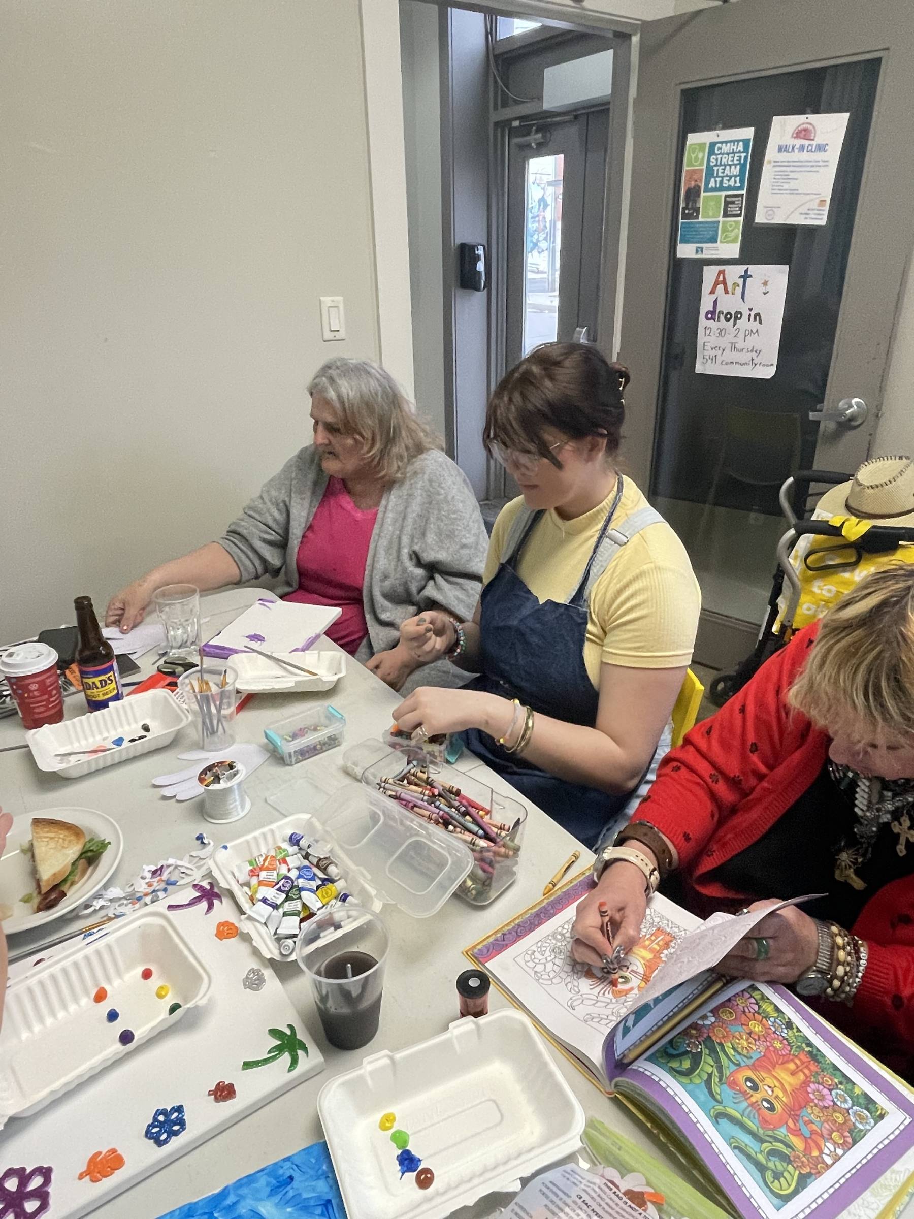 541 doesn’t only use food to foster connection and belonging. They also use their space and resources to host community groups and youth programming. Once a week, our student Eden runs an afternoon art-making drop-in at 541. She wrote the following to describe her experience there so far: