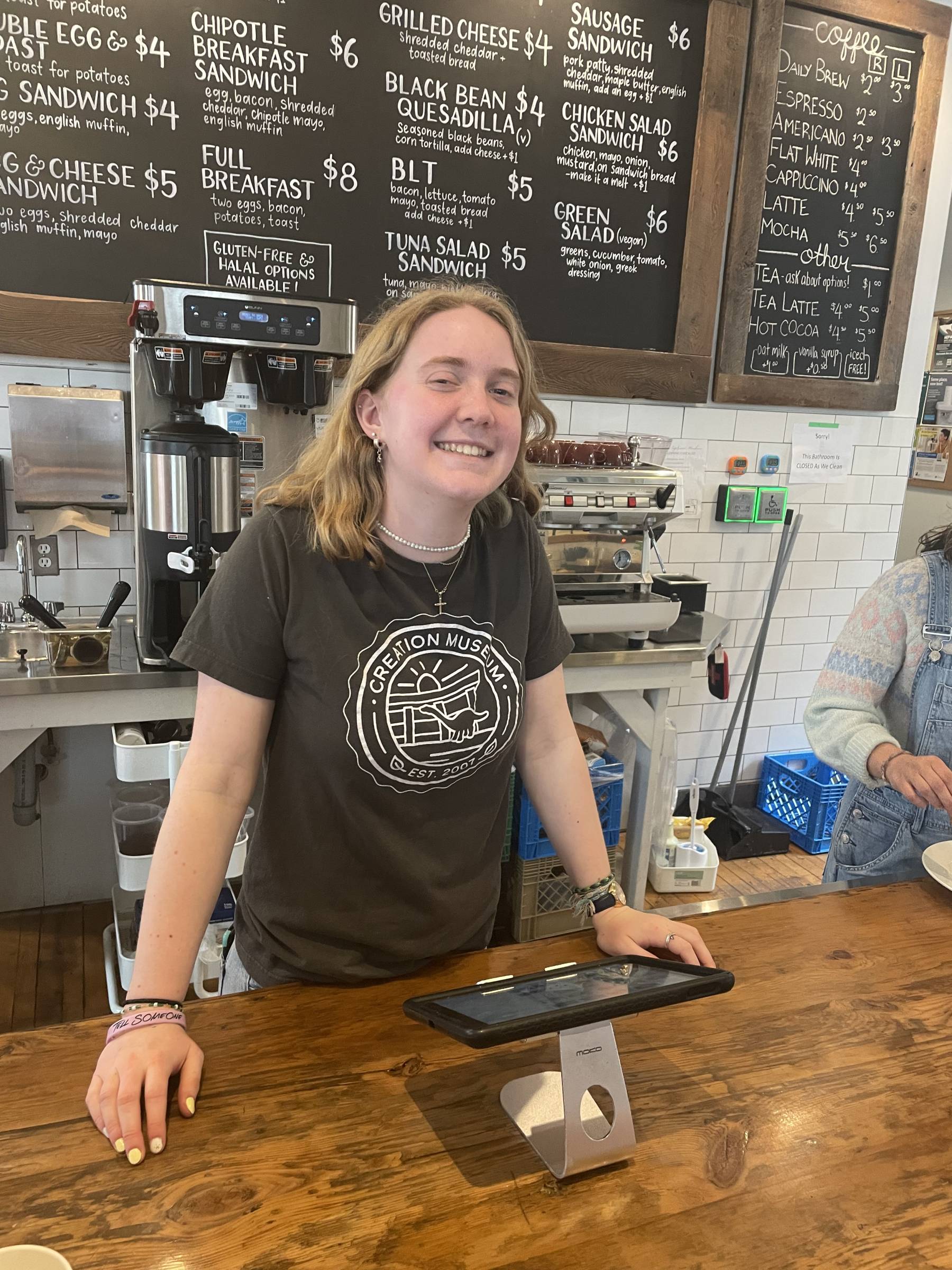 These are words from Zoe, who might take your order if you walk into 541 Eatery & Exchange on a Tuesday or Thursday this term. She is one of three students from our gap year program volunteering with 541 this semester.