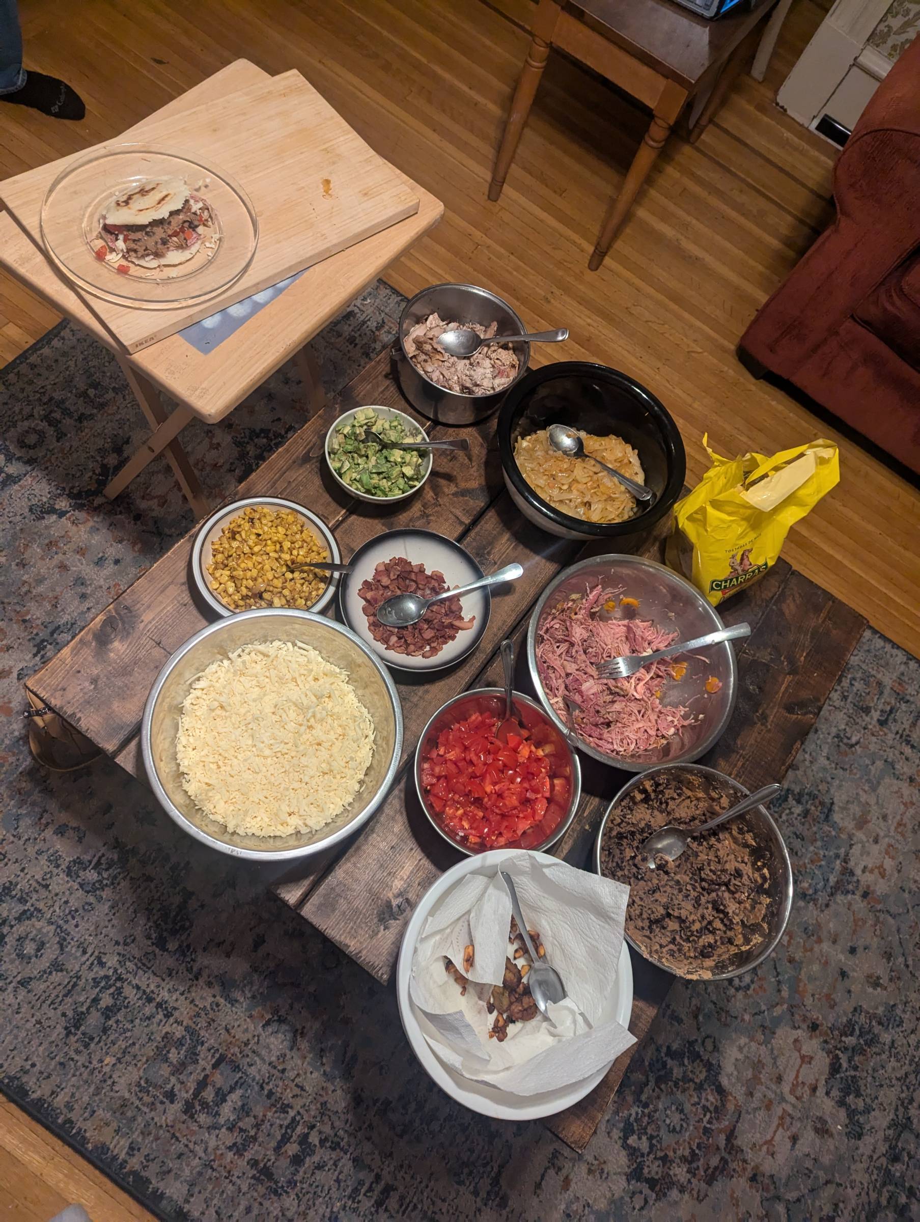 Two weeks ago one of our students, Daniel, who is from Colombia, hosted an evening called “A La Mesa” (At the Table). This night included a homemade Colombian dinner, Spanish speaking competitions and ended with the watching of Encanto. For this, Daniel taught several of us how to make arepas using corn meal to bake flatbreads which we stuffed with corn, avocado, chicken, spiced pork, plantain and more. Droolworthy, right? These dinners will continue for the next few months as a way for students to practice conversational Spanish phrases over food that feels unfamiliar to them.