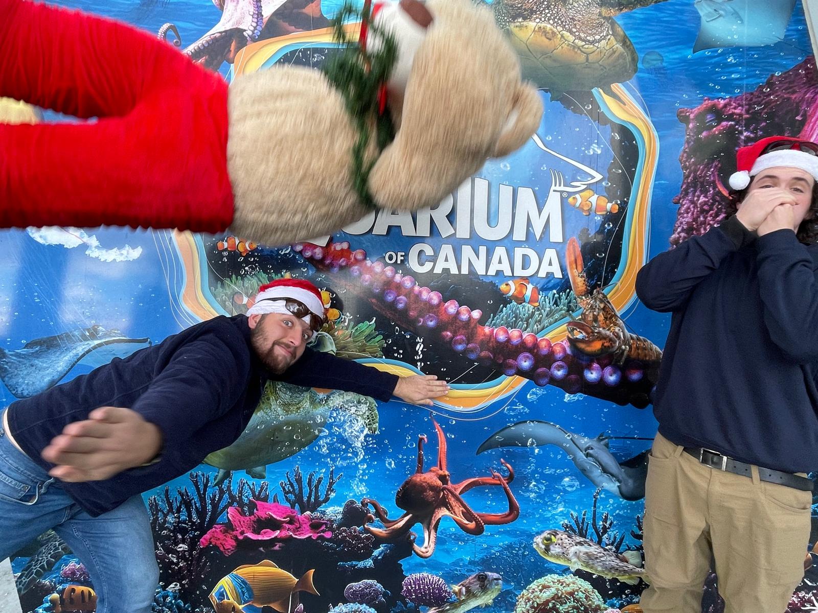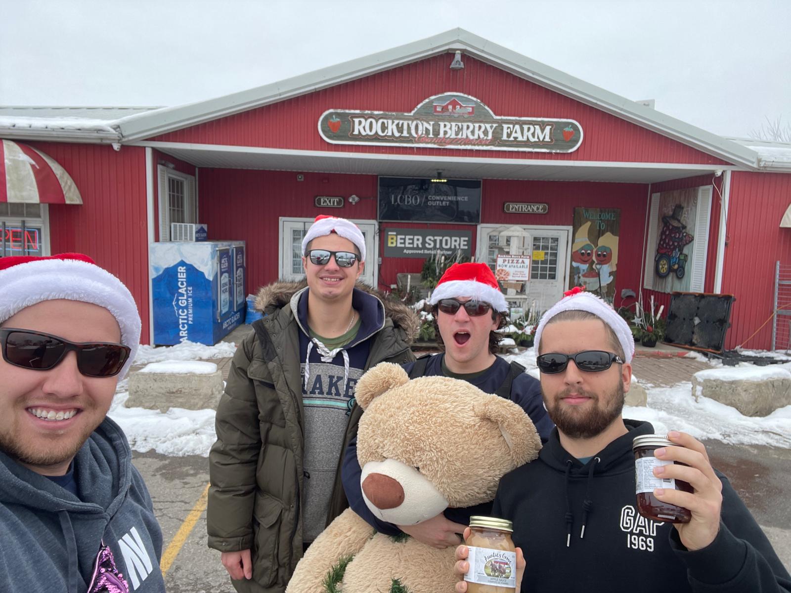 In the meantime, the boys found themselves straddled with a human sized teddy bear named Cozy Rosie. They dressed her in Santa pants and  a wreath and followed their clue to Cambridge where they put on a Shakespeare play in the park. A man attempted to heist Cozy Rosie from them and after fighting him off, they too headed to Port Dover for a service project, cooking competition and polar plunge.