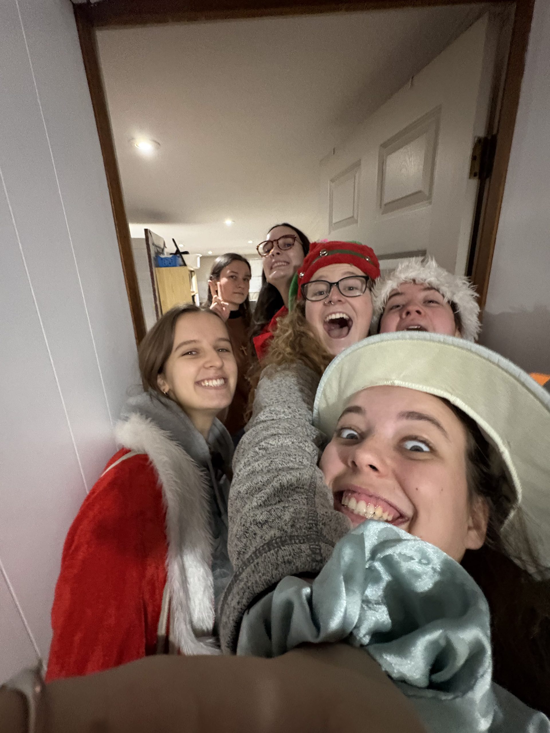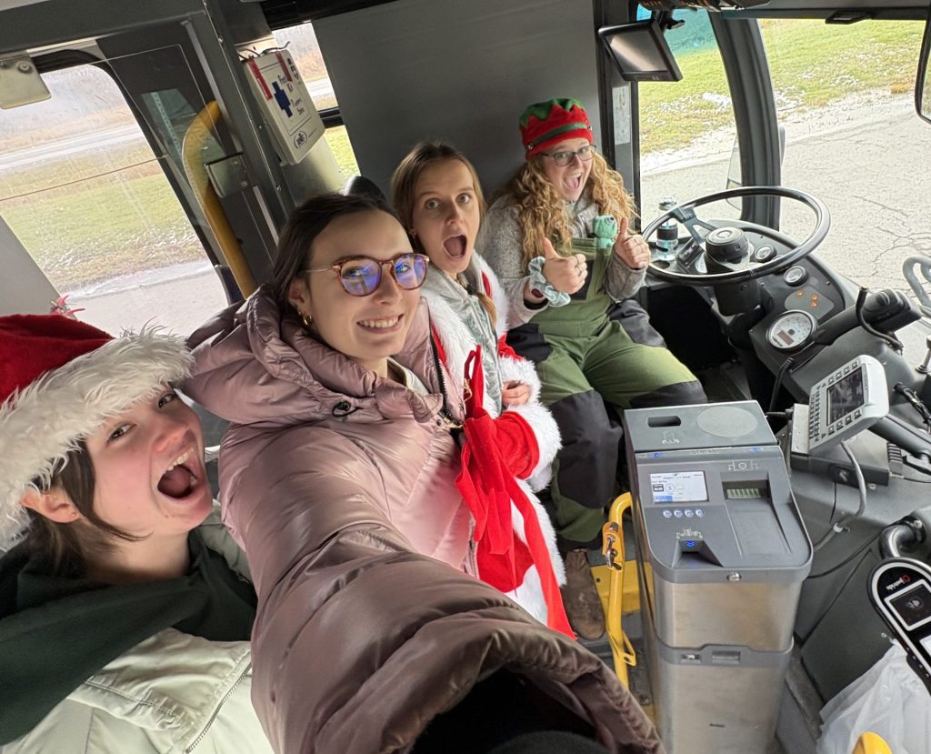 We begin with the girls. They bravely grabbed their costumes and drove off into the snow following their first clue to Niagara Falls. Many photos, videos and a failed attempt to cross the border later, they found themselves sitting in the drivers seat of a parked city bus before heading off to Port Dover for the evening.